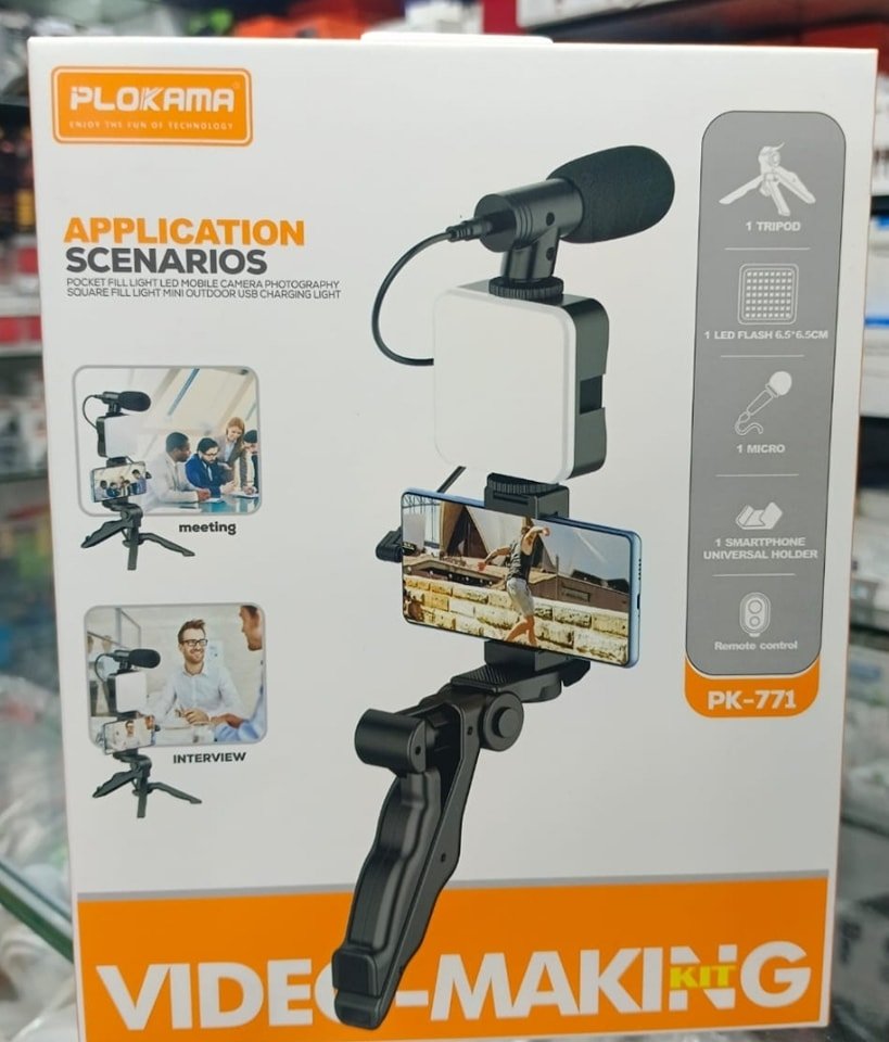 Plokama PK-771 5-in-1 Vlogging Kit with LED Light, Tripod & Mic