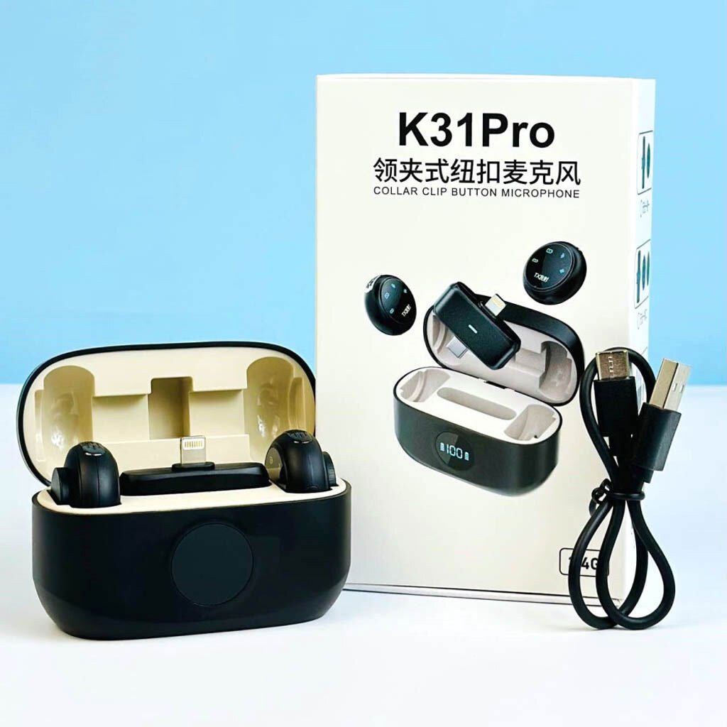 K31Pro Wireless Lavalier Dual Microphone 2.4G with 5.3 Bluetooth, ENC Noise Cancelling, Digital Display for Video Shooting & Recording