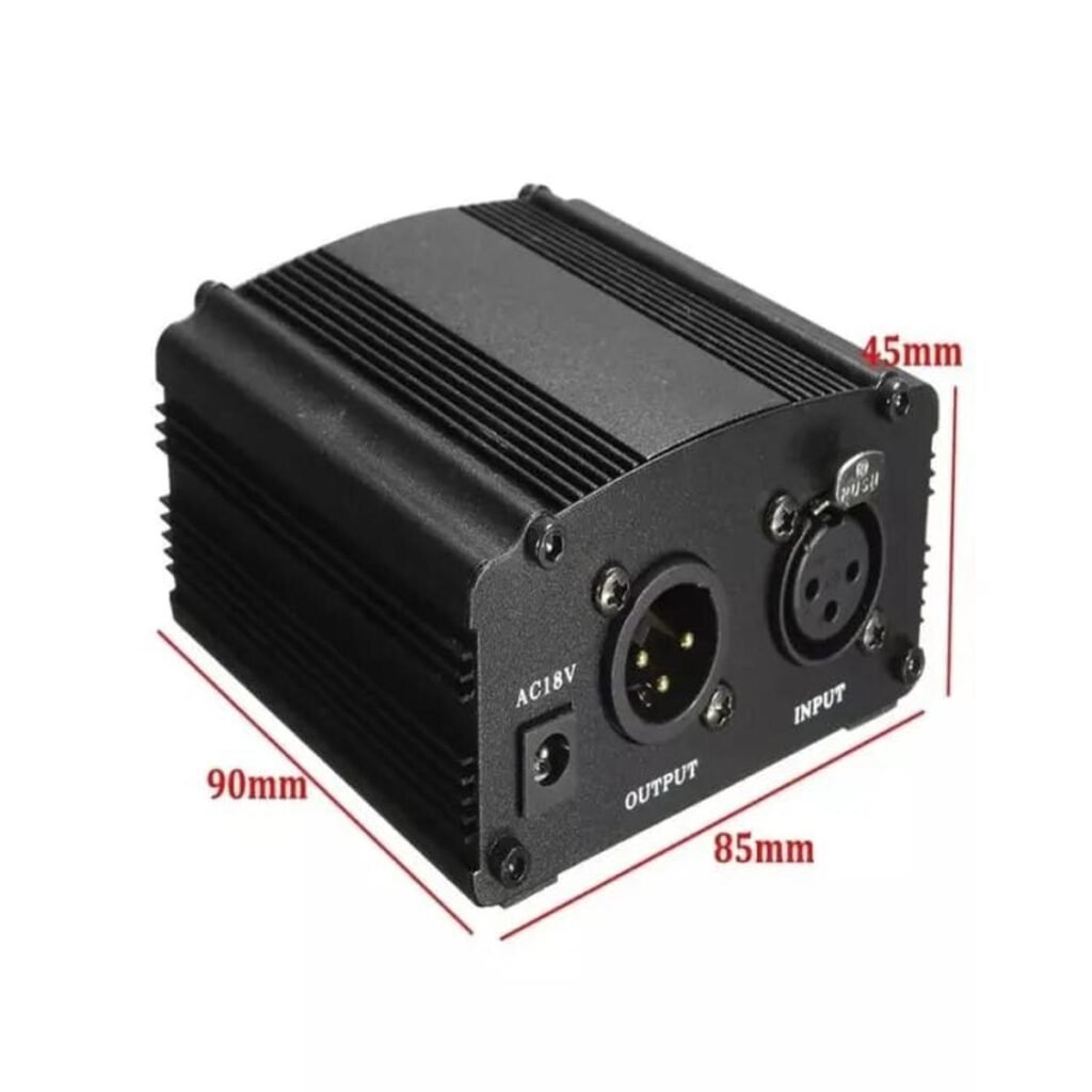 48V Phantom Power Supply with Adapter & XLR Audio Cable – Black