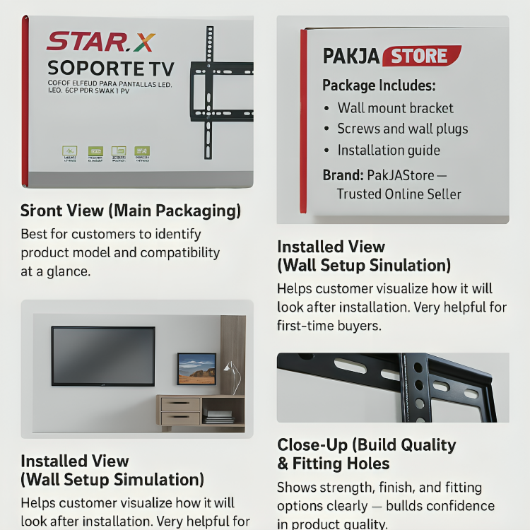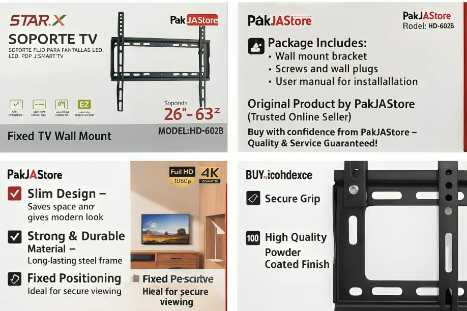 Be the first to review “26 to 63 Inch Large Size Heavy Duty Metal LCD LED Smart TV Wall Bracket Mount Stand (Fixed/Non-Movable) with Screws & Bolts – Black”