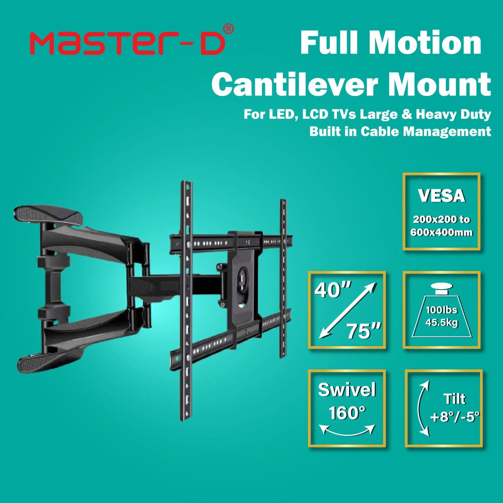 Cantilever Design: Extendable arm for adjusting TV distance from the wall