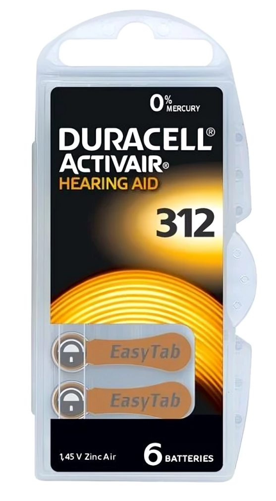 Duracell EasyTab/Activair Type 312 Hearing Aid Batteries Zinc Air Box of 10
