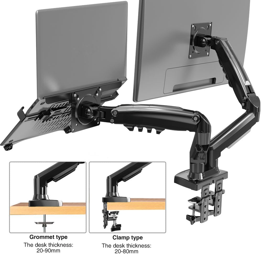 NB F160-FP-2 Dual Monitor & Laptop Stand | Adjustable Desk Mount for 17-27” Screens