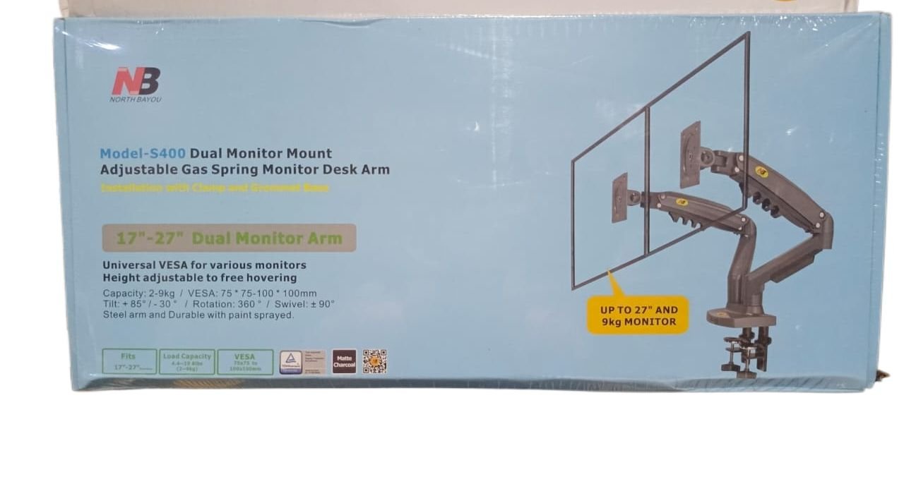 Be the first to review “S400 Dual Monitor Stand for 17–27 Inch Screens Full Motion Swivel Arm with 2–9Kg Load Capacity, VESA 75×75 & 100×100mm in Pakistan” Cancel reply