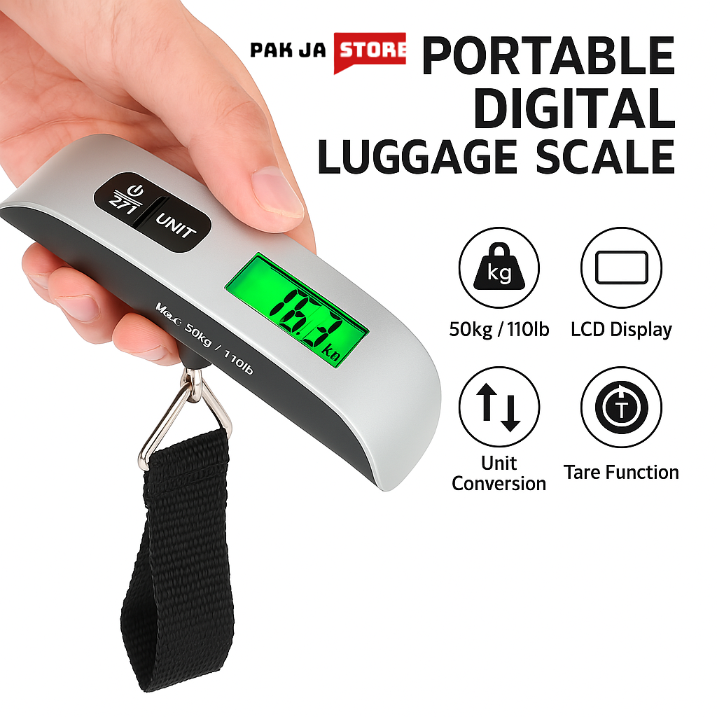 Portable Digital Luggage Scale with LCD Display – 50kg / 110lb Electronic Hanging Weight Scale for Travel Suitcases & Baggage