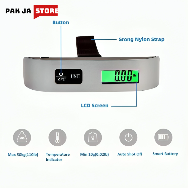Be the first to review “Portable Digital Luggage Scale with LCD Display – 50kg / 110lb Electronic Hanging Weight Scale for Travel Suitcases & Baggage” Cancel reply