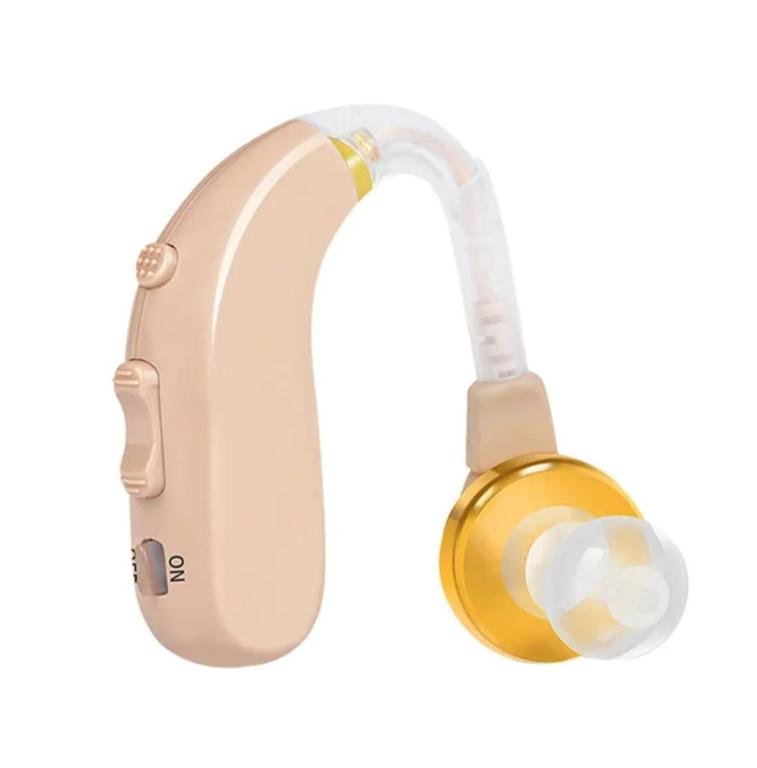 - 👂 Comfortable “Behind-the-Ear” Design: The light brown, skin-toned body with a transparent ear tube is discreet and lightweight. It fits comfortably behind the ear for all-day use without causing pain.